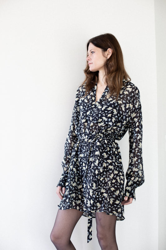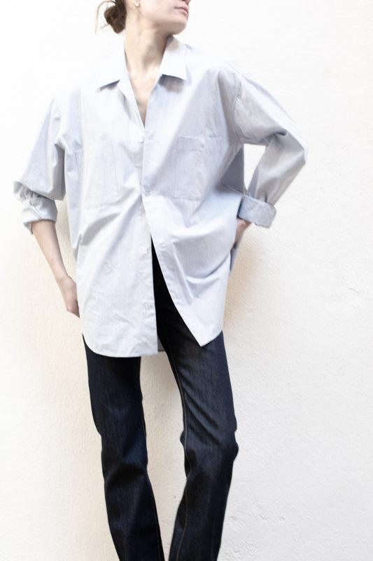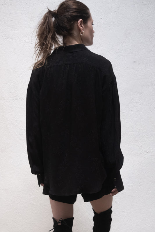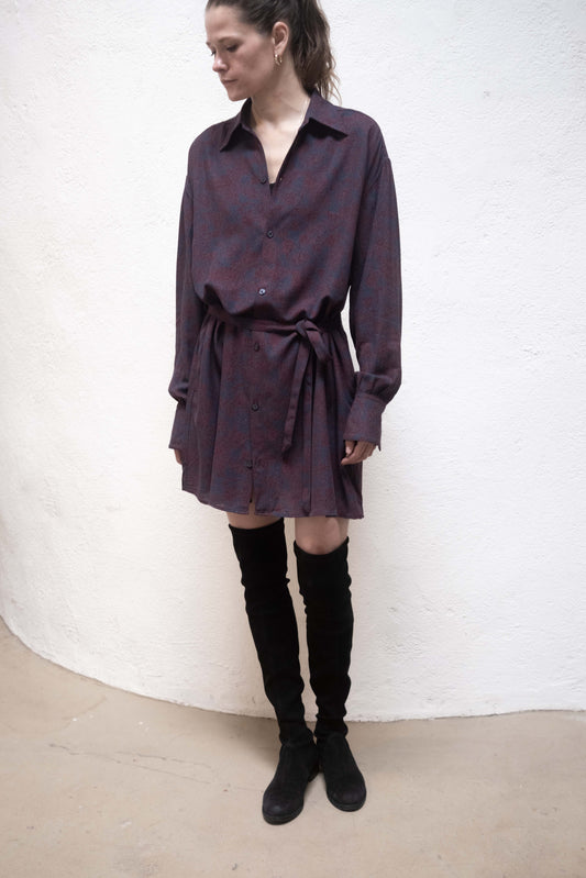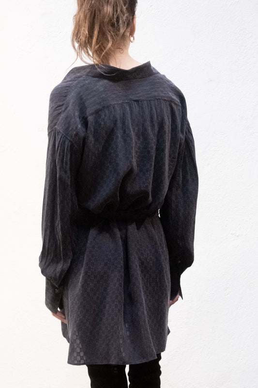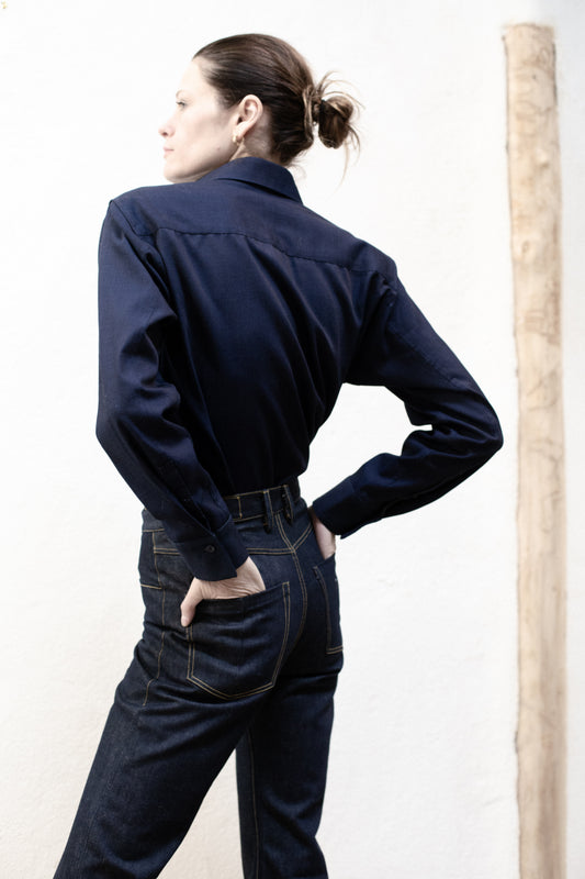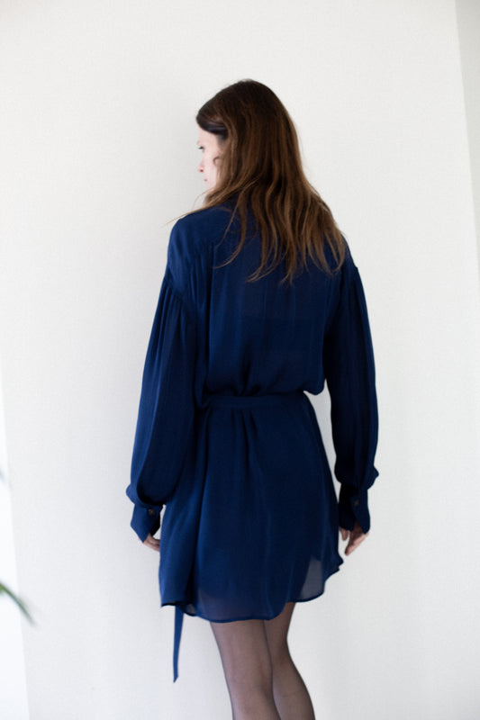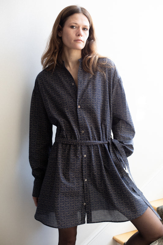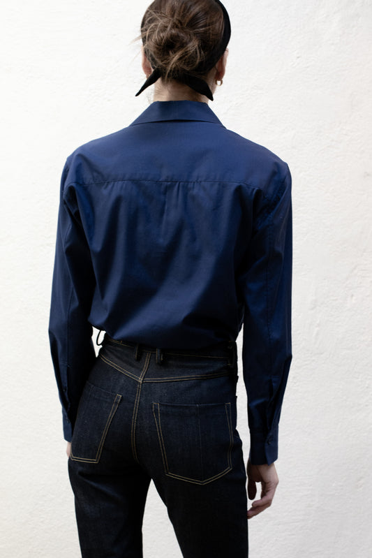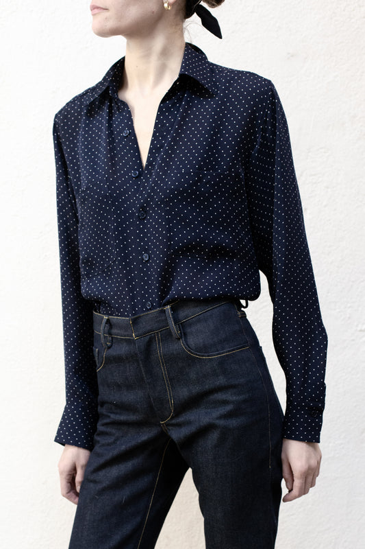 Dress Shirt in Navy Blue Poka Dot Rayon