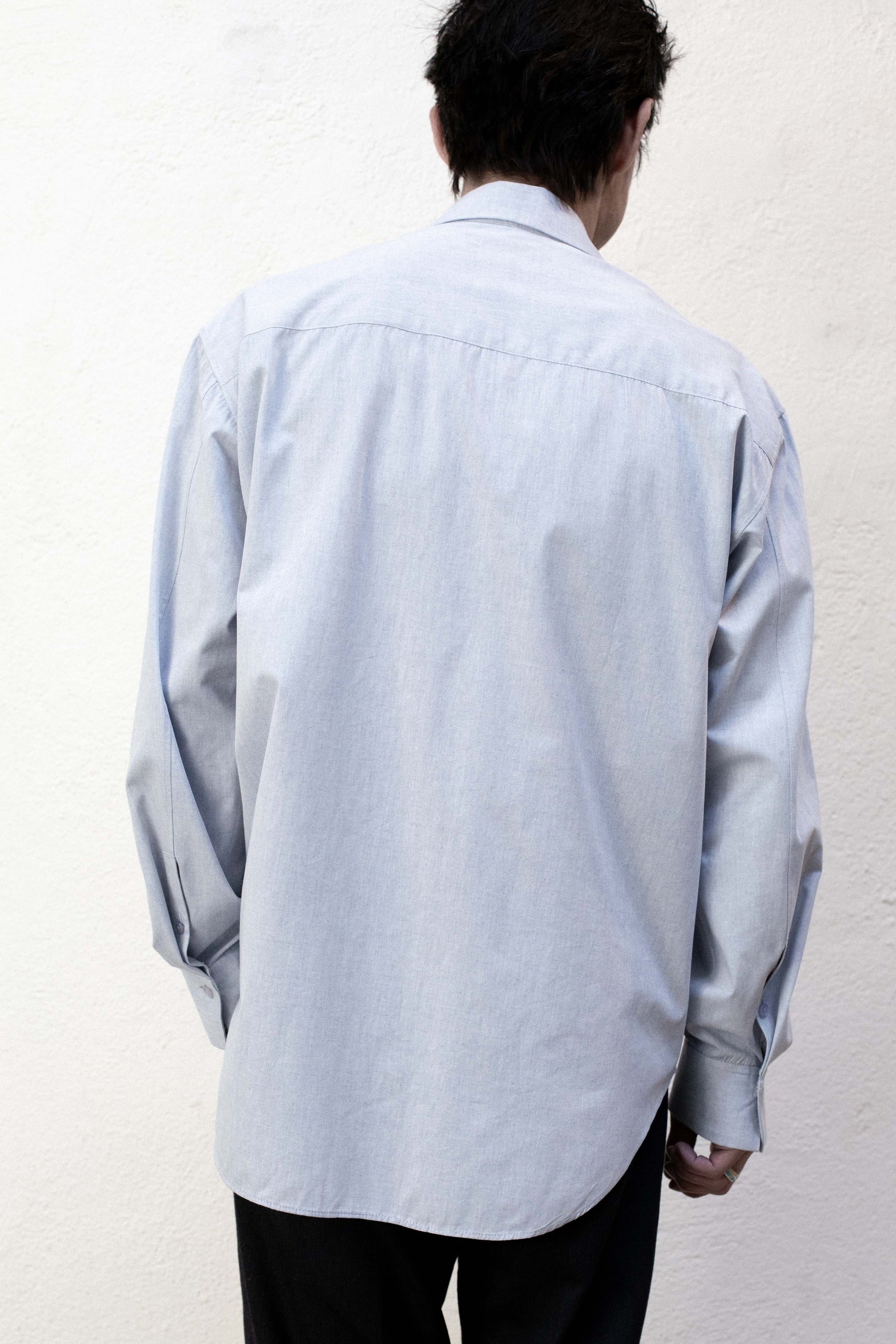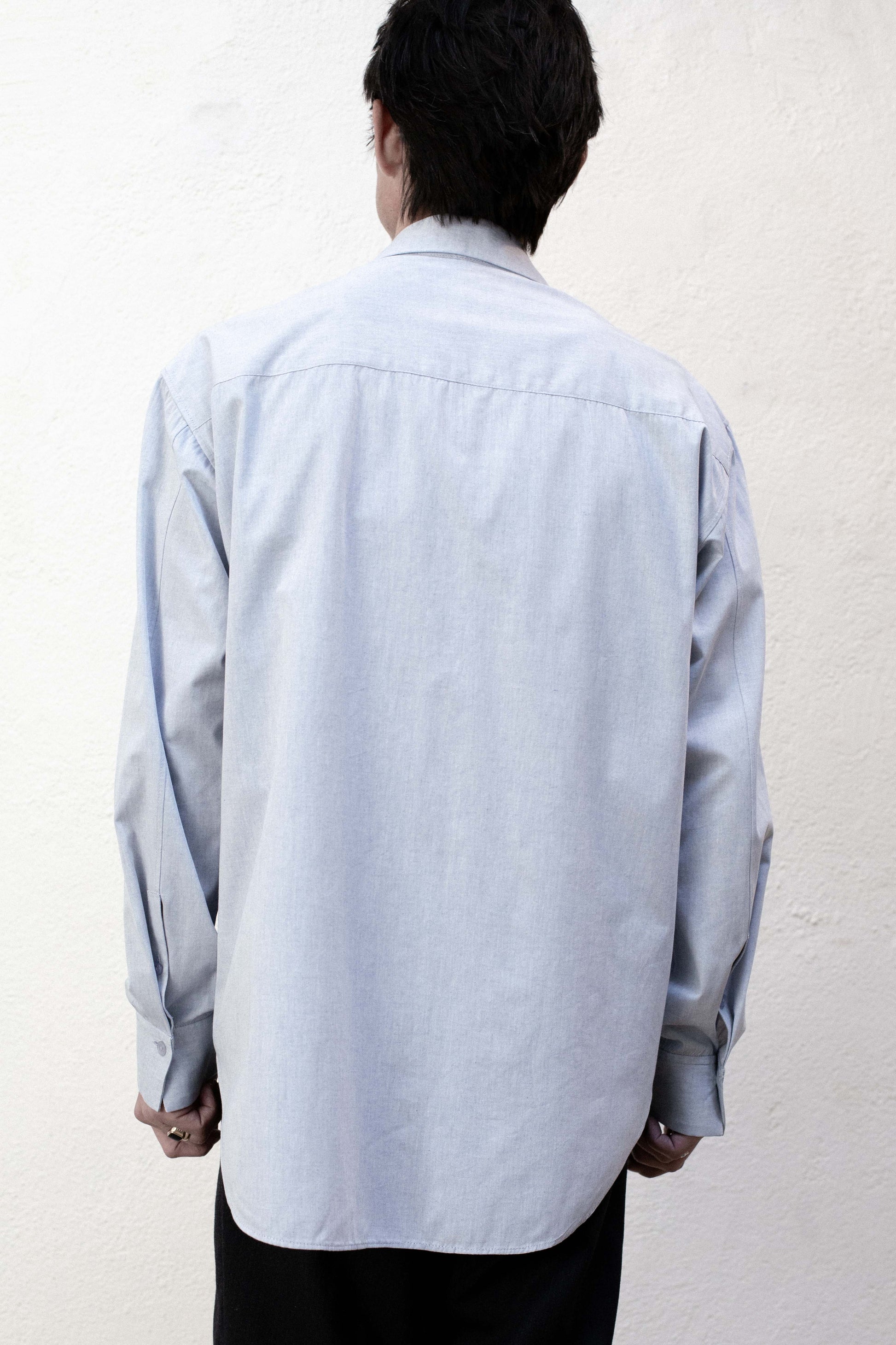 This Casual Shirt in light blue chambray offers a relaxed fit and smooth texture. Crafted from 100% cotton, it features single needle stitching, two deep chest pockets, and a "Cubano" style collar for a timeless look. Long sleeves with deep pleat cuff details complete the design, blending comfort and style effortlessly.