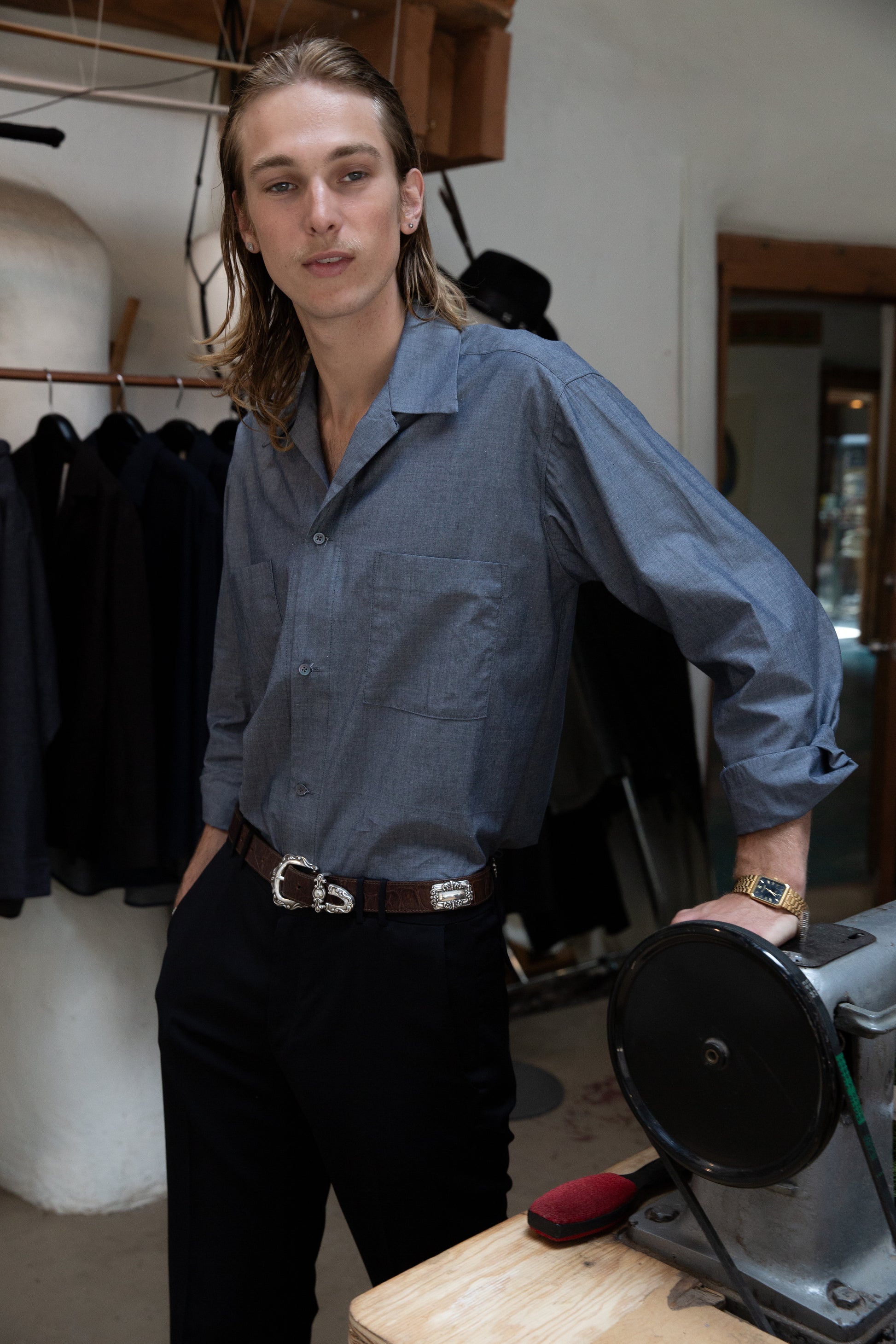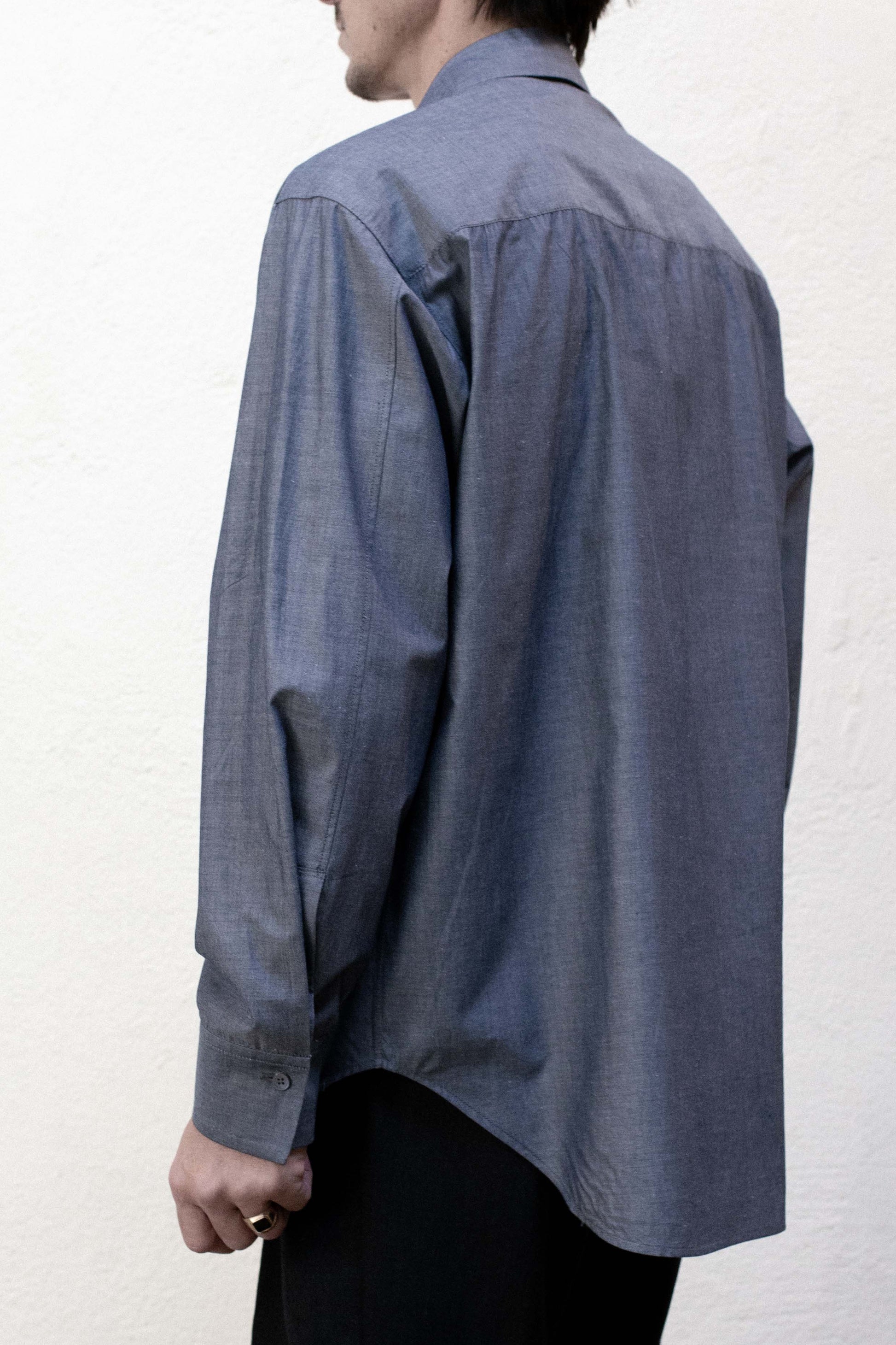 This Casual Shirt in grey cotton features a relaxed fit and a smooth, lightweight texture. Crafted from 100% cotton, it includes single needle stitching, two deep chest pockets, and a "Cubano" style collar for timeless appeal. Long sleeves with deep pleat cuff details add a refined touch to this versatile piece.