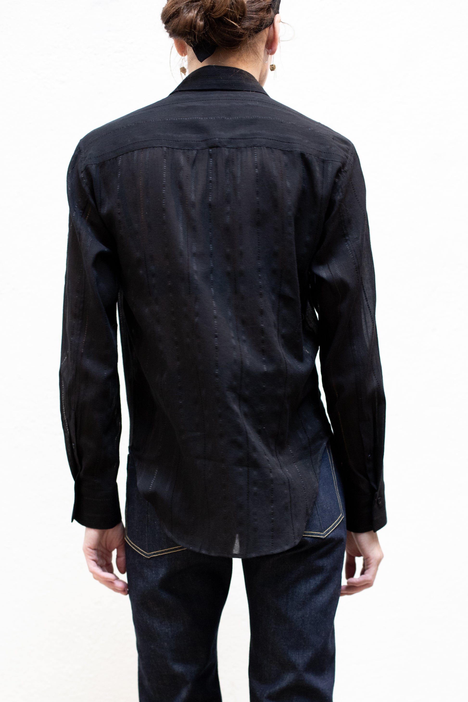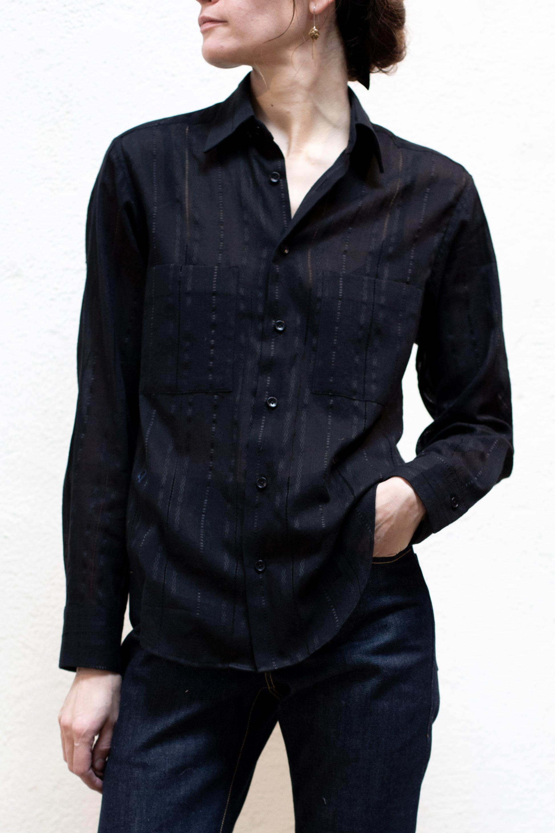 Dress Shirt in Black Cotton Stripe Woven