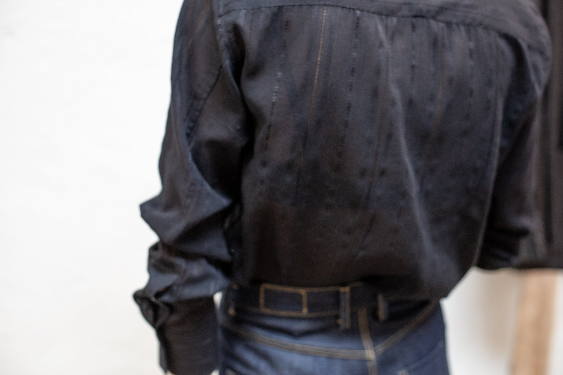 Crafted from 100% black cotton stripe woven fabric