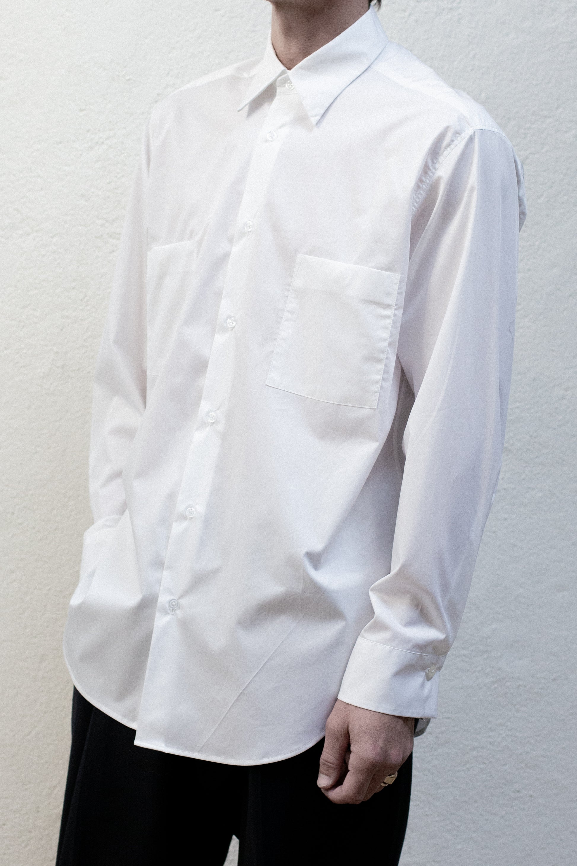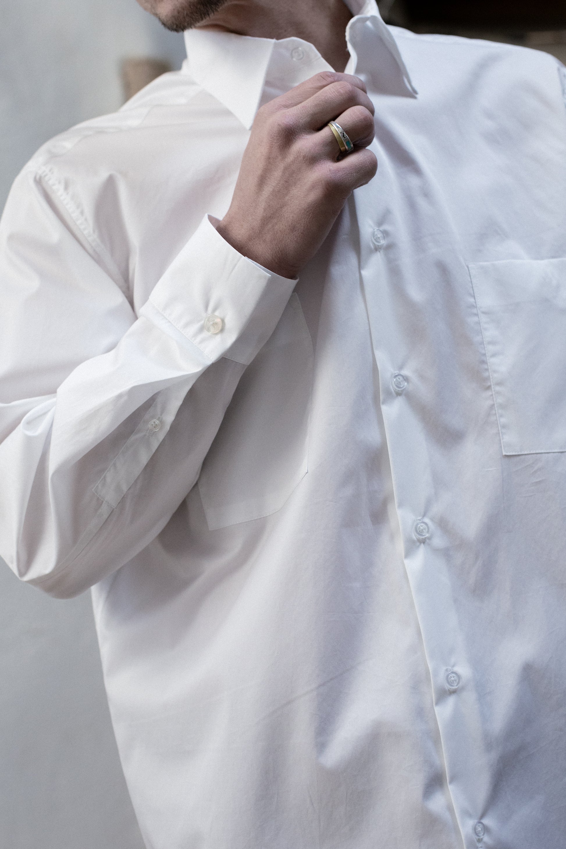 This Dress Shirt in ivory white Egyptian Pima cotton offers a relaxed fit with timeless elegance. Featuring single needle stitching, a chest pocket, and a classic collar, it delivers both comfort and style. The long sleeves with deep pleat cuff details complete the look with a refined touch.